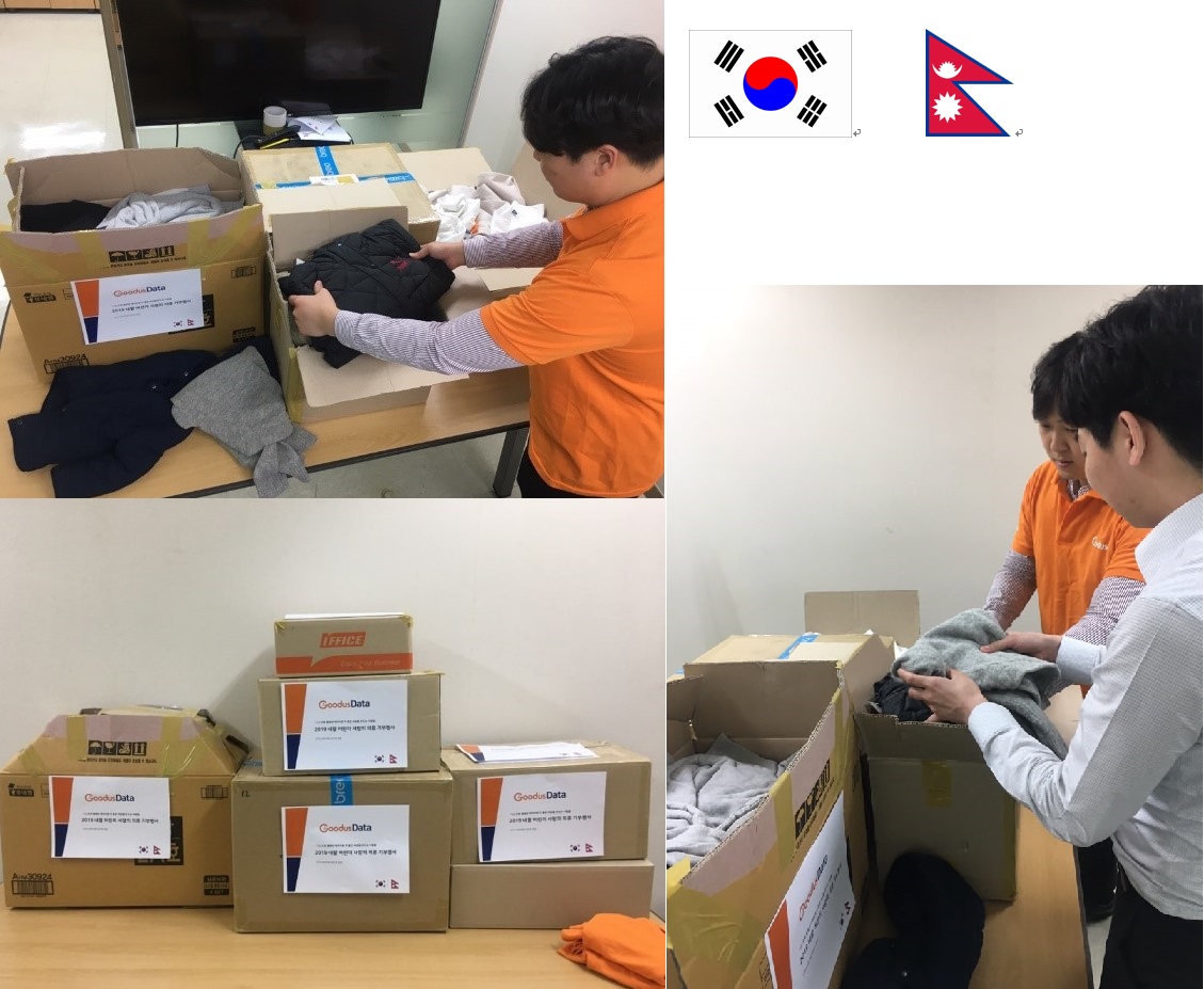 네팔의 어린이와 청소년에게 사랑과 나눔을 실천하는 멋진 굿어스데이터人들은 모두 한마음을 모아 적극 참여로 예상했던 목표치보다 많은 기부 의류를 보내주셔서, 네팔에서 필요로 하는 하의 위주의 의류를 선별하여 보내는 작업을 하였습니다.
