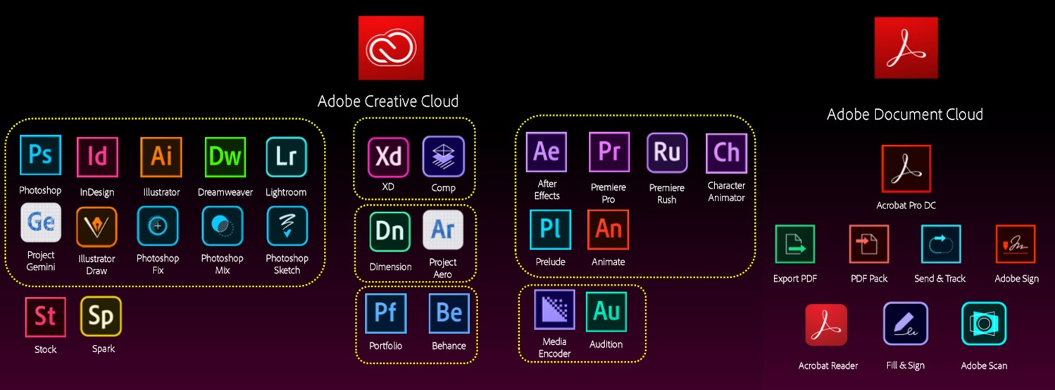 어도비는 Subscription 계약방식으로 디지털미디어 솔루션 : CC (Creative Cloud) , 디지털문서 솔루션 : DC (Document Cloud) , 경험기반솔루션 : EC (Experience Cloud) 등의 제품군이 있습니다.