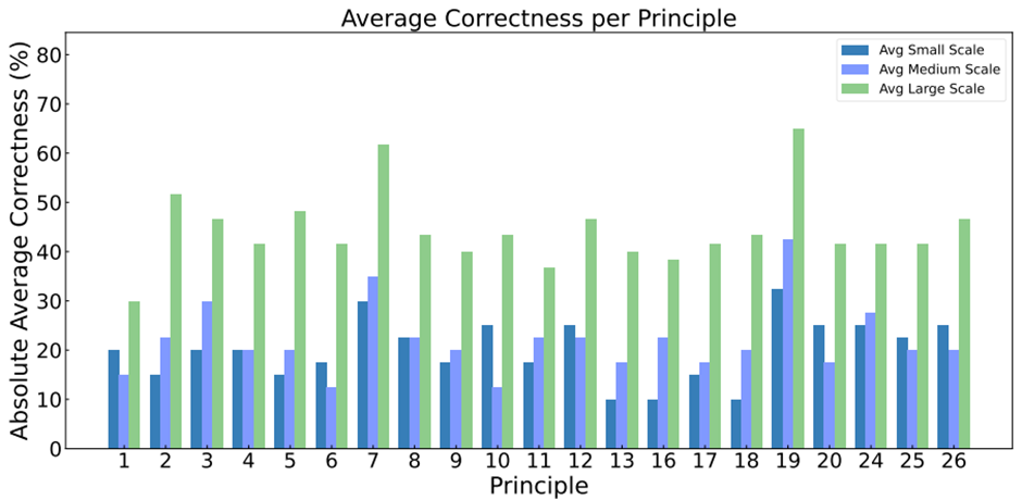 본 논문에서는 프롬프트 엔지니어링 원칙을 적용한 결과를 LLM의 규모에 따라 분석하였습니다.