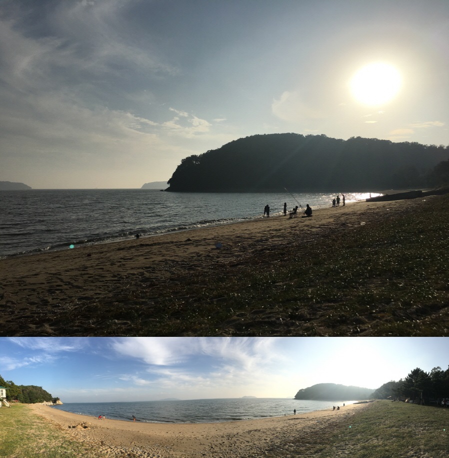 지옥의 코스를 이겨내고 목적지인 진촌해변에 도착했습니다.
