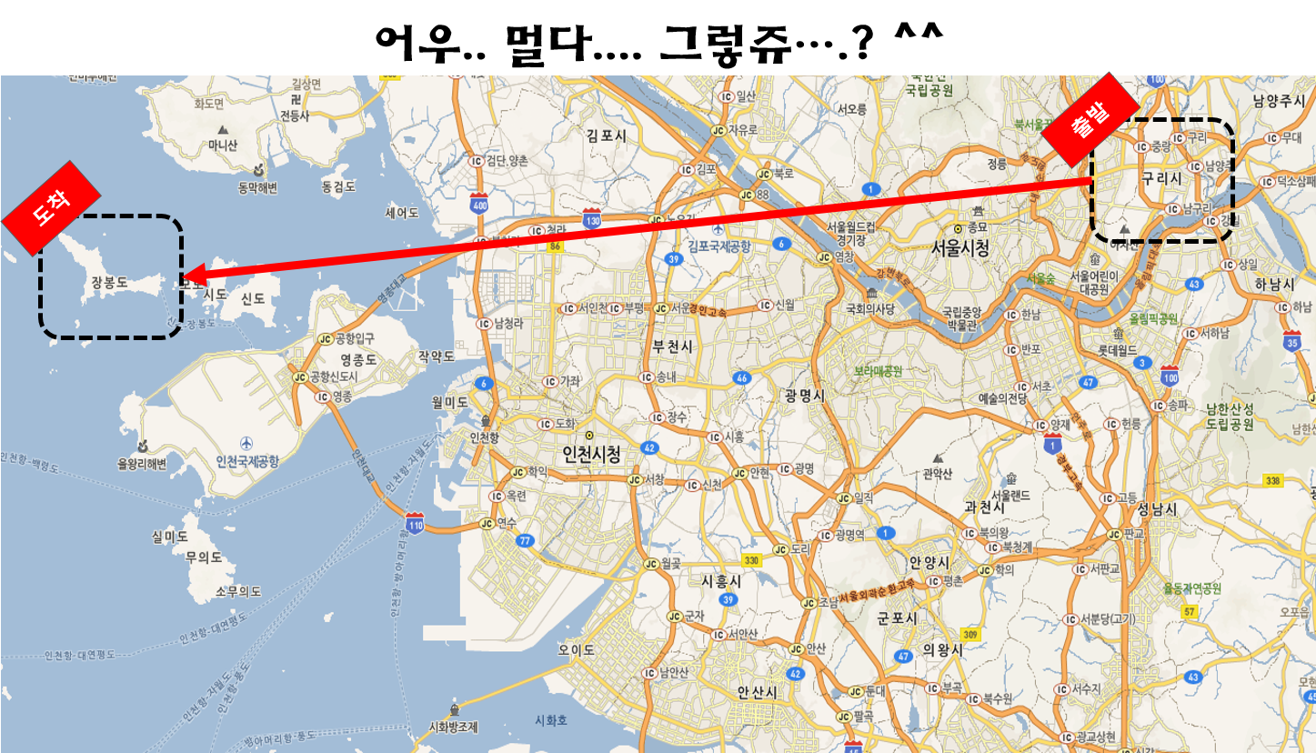 장봉도는 인천 옹친군 북도면 장봉리에 위치한 섬으로 출발지가 경기도 구리인 저는 지하철과 배를 이용하여 갈 수 있었는데요.