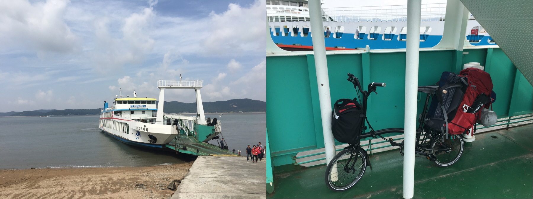 대기중인 배에 자전거와 함께 몸을 싣습니다. 참고로 말씀드리면.. 자전거도 운임료가 부과됩니다.