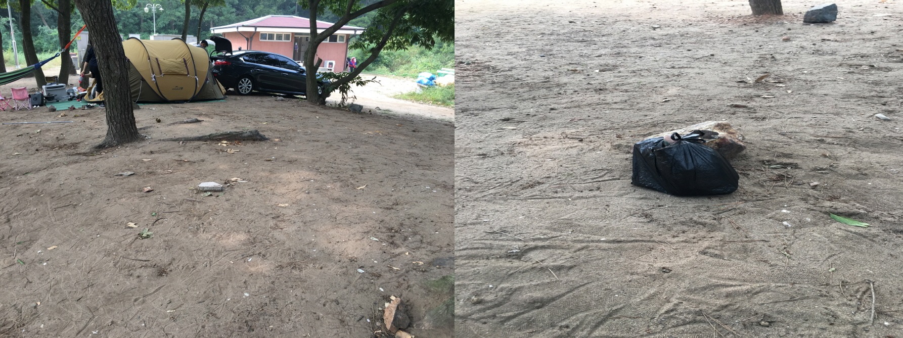 장봉도에서 하루를 보내며 생긴 쓰레기들을 한 봉투에 담아 캠핑장 쓰레기 수거 장소에 잘 버렸습니다.