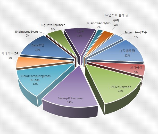 세미나 후미에 진행 한 설문조사에 따르면 IT관리자에게 현재의 문제점을 질문했을때 3가지의 의견이 있었습니다. 첫번째는 '데이타 보안', 두번째는 '백업 및 리커버리', 마지막으로 세번째는 'DB12c 업그레이드'에 관한 것이었습니다.