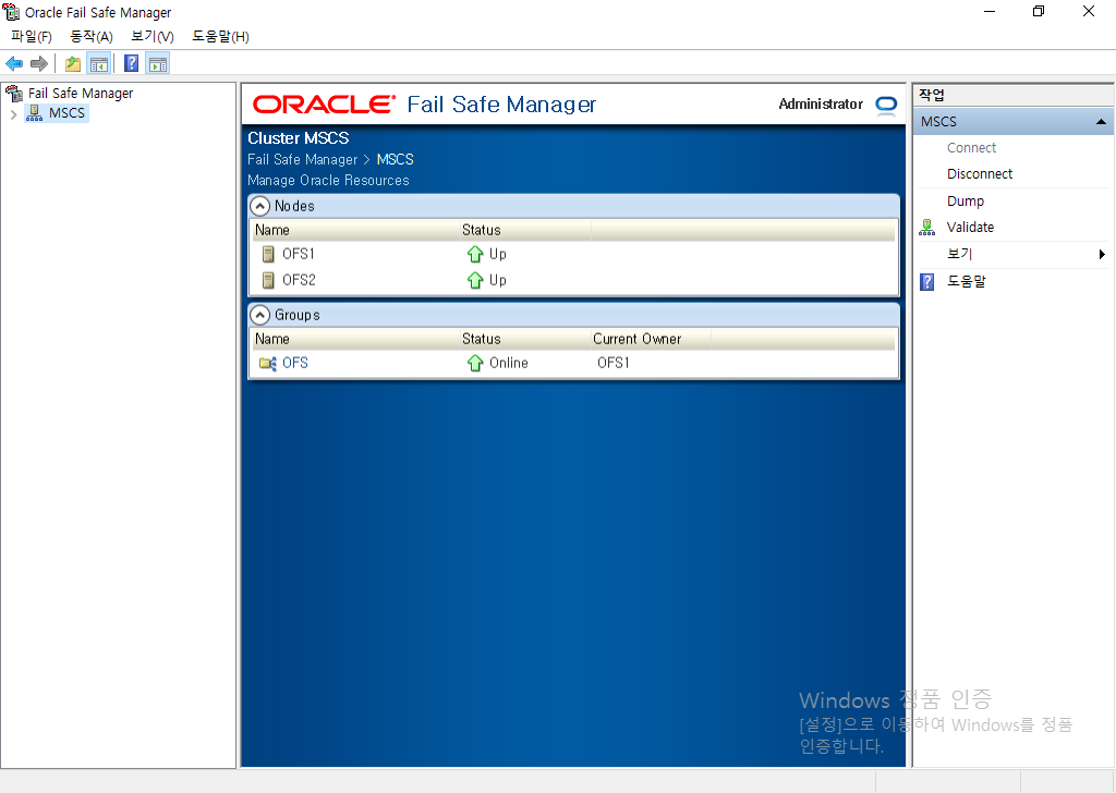 Oracle Fail Safe(OFS)는 Microsoft Windows Failover Cluster(이전의 Microsoft Cluster Server MSCS)와