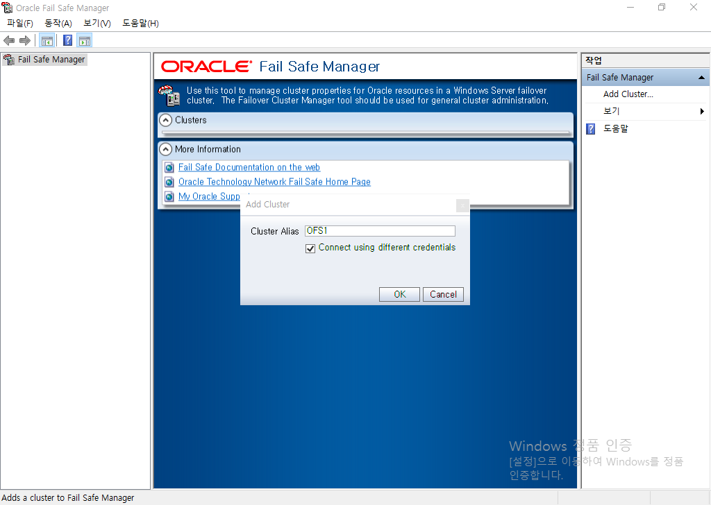 Oracle Fail Safe Server는 반드시 Microsoft Windows Failover Cluster가 구성된 곳에 설치해야 합니다. Windows 7 및 Windows 8과 같은 비 서버시스템에서는 지원되지 않습니다.