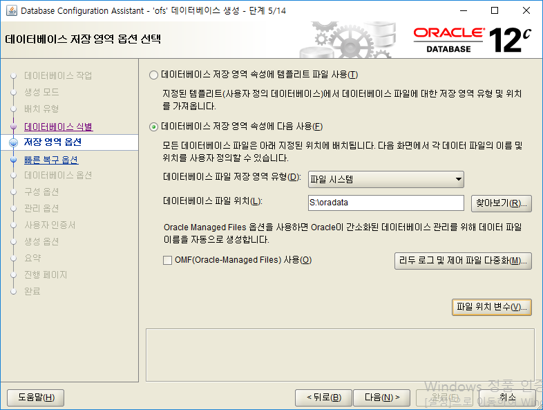 l Oracle Automatic Storage Management(ASM)은 지원하지 않습니다.