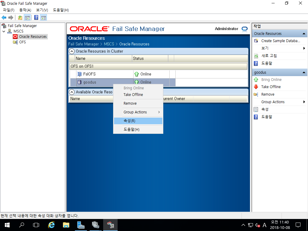 Oracle Fail Safe는 Windows Failover Cluster의 Resource 개념을 사용하여 Database를 관리합니다.